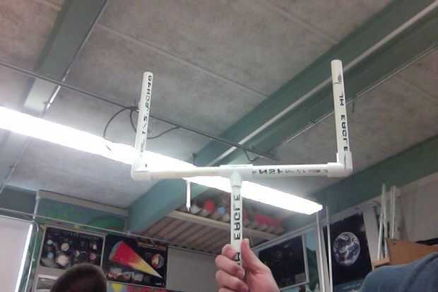 de la V se necesita:-12 en PVC (2)-codo de 90 gradosPara la R se debe:-pipa 12 en PVC (2)-tubo 6 en PVC (5)-tubo 3 en PVC-90 grados de codo (3)-T (2)-codo 45 gradosPaso 1: A partir de la V -Cortar un tubo de PVC para ser 15 en de largoPaso 2: Parte i