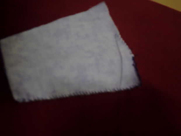 Colocar los trozos de tela con sus caras exteriores uno frente al otro (revés) y empezar a coser alrededor de los bordes a partir de una de las esquinas, el borde más estrecho. Cose todos los lados excepto por el lado más pequeño, por lo que debe acabar costura en la esquina en el otro lado del borde más pequeño (véase cuadro 3).
