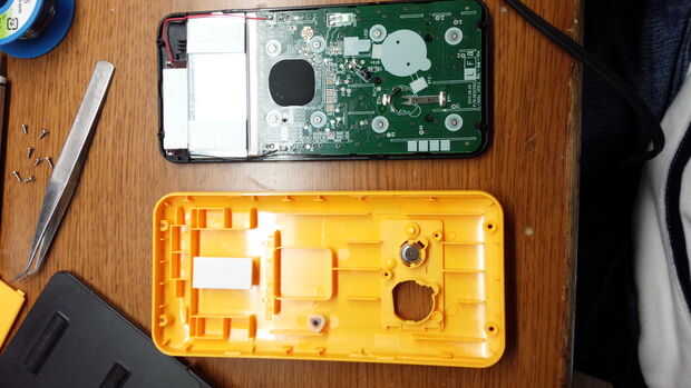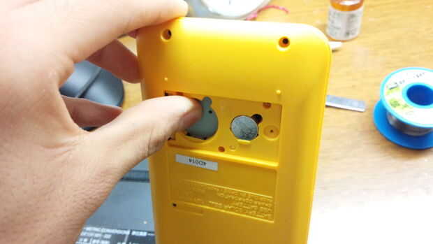 電池の隣の基板を押すとボディが分離します。