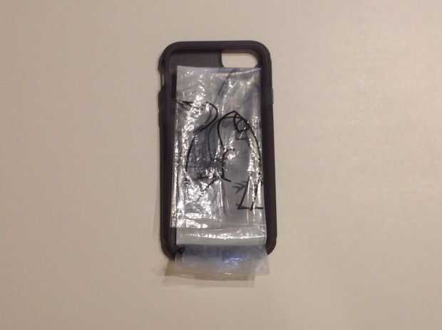 A continuación, coloque el caso de su teléfono. Asegúrese de que la bolsa no es coving el lugar donde estaría la lente de cámara de su teléfono o puerto de carga.