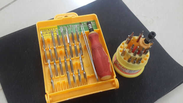 Así que tengo un atornillador y un montón de "muchos en uno" kits de destornillador. Mientras que el kit es excelente, los bits comunes son un poco demasiado grandes para la mayoría de proyectos de electrónica. Siempre he querido un adaptador para poder utilizar las brocas de 3mm de los kits con el atornillador. Los kits son realmente baratos, probablemente un par de dólares. Así que, aquí está un hack para casar los dos juntos para que puedan utilizar bits del kit con el atornillador.