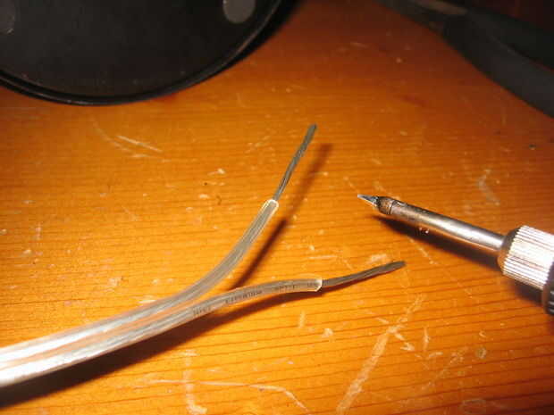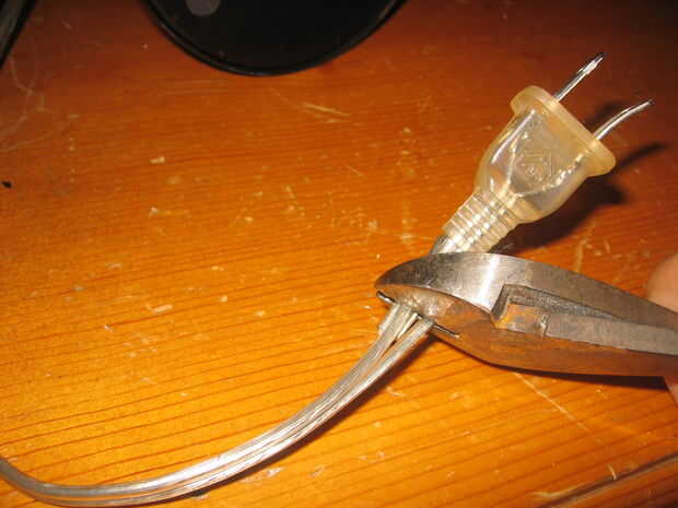 Clip de la clavija en el extremo de la cuerda, les separe y tira de los dos cables, entonces saca su soldador y los extremos de la lata, esto lo hace por lo que el alambre permanece juntos y dosis no fray aparte.