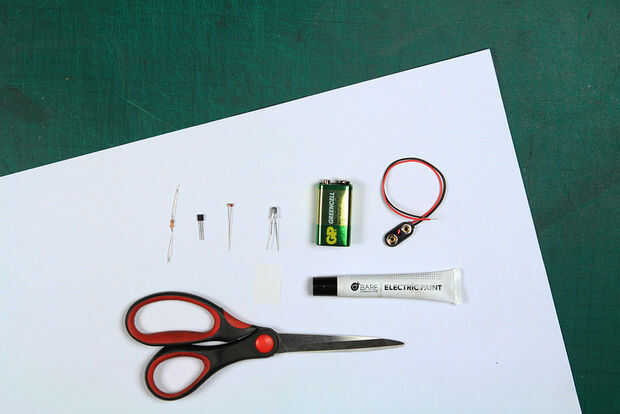 Este proyecto fue creado para de YuKonstruct Chibitronics construir noche y utiliza una etiqueta de efectos Chibitronics y tres pegatinas de LED.La pegatina efecto tiene tres pastillas: + y – para poder y una señal que genera el patrón. El botón de s