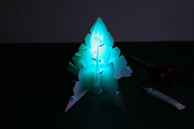 Ver su árbol brille! Baje las luces y ver su árbol de Navidad cobran vida! Si usted todavía tiene una de sus casas de papel puede hacer una escena de Navidad miniatura.
