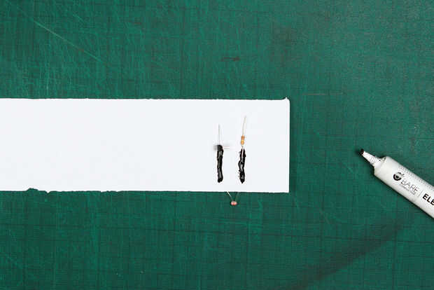 A continuación, coloque el resistor, transistor y el LED como se muestra en las imágenes de la derecha.