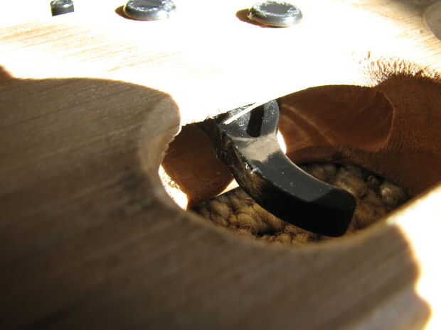 Deslice la manija hacia atrás y las piezas del triángulo se fuerza la goma de las ranuras.
