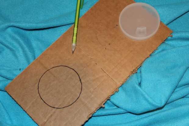 La foto muestra dos círculos dibujados en mi hoja de cartón. Remonta a uno con un rotulador para que pudiera ver mejor en la foto. La tapa de la taza (mi objeto redondo) próximo a parcialmente cubre el segundo círculo.