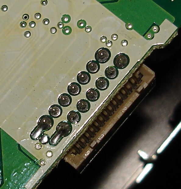 -Tenga cuidado con el cable y desenchúfelo. Las imágenes son de la misma después de soldar los cables, pero Ud. puede stil ver cómo encaja.
