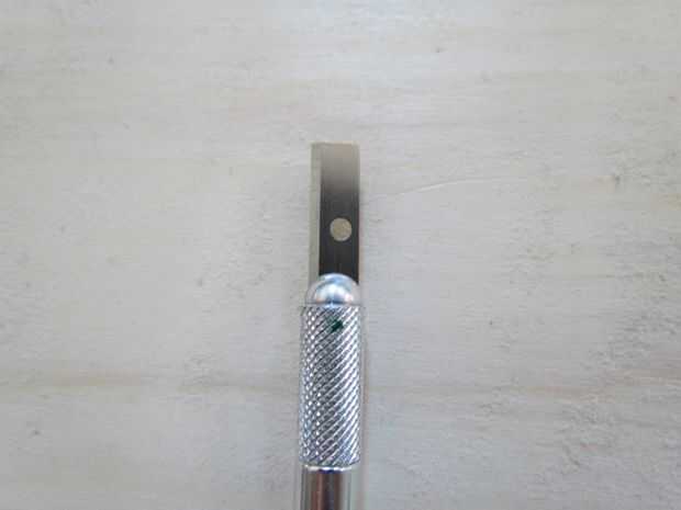 ¡ Hola!Aquí está una manera simple de romper el extremo despuntado de cuchillo del cortador de papelNo es necesario ningún tipo de herramienta, sólo tiene que utilizar una ranura de Copa negro