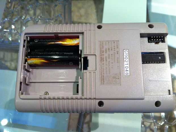 Usé 2 recargable 3.7v baterías de litio en la serie como la fuente de alimentación (7.4v) que fue suficiente para alimentar la pantalla LCD y regulador de voltaje de 5v original de SueJuegos para convertir los 7.4v hasta 5v para correr el circuito ATMEGA.