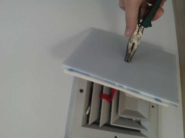 Utilizar alicates de punta para tirar de la correa a través del orificio de la cubierta.