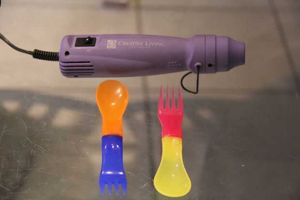 Después de unos minutos verás que el plástico tiene una mirada suave brillante superficial, no toque está lejos de ser suave y se pegue en los dedos ¡ Ay!, ahora es el momento de ponerlos juntos. Presionan duro cara a cara durante unos 30 segundos y WALLAH!!!!!! Ahora tienes tu propio spork o foon para una fracción del precio ;) He intentado doblarlas donde se pusieron juntos pero no se movió. Ahora tienes algo útil en tus caminatas o acampar y lo ayudó a gestionar su espacio. Ahora todo lo que necesita es su comida, sino que voy a dejar hasta :)