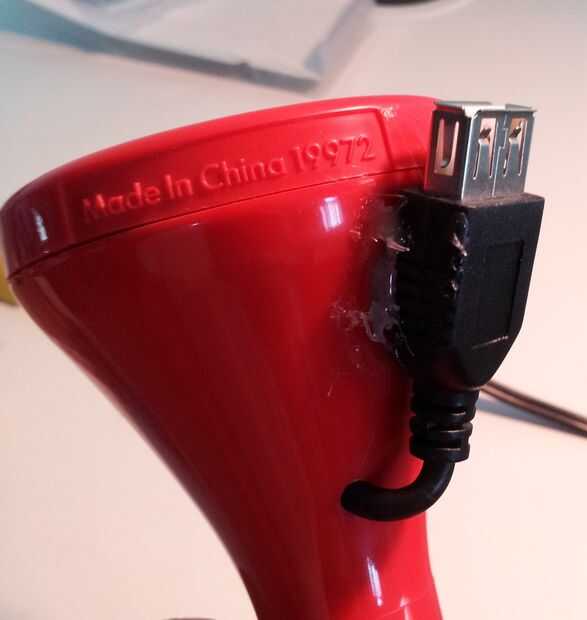 Consideré instalar puerto USB dentro de la linterna para un look más limpio, pero no hay suficiente espacio.