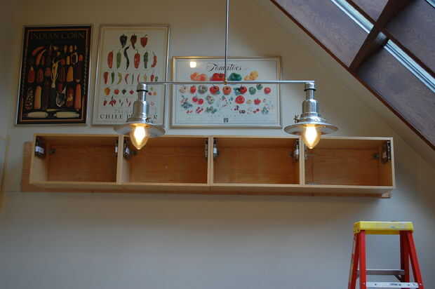 La pared fue grabada luego de calafateo, cebado y pintura de la madera contrachapada. Debido a la manera de que los armarios se montan, no decidimos utilizar las partes posterioras el gabinete del IKEA, que son de color blancas.