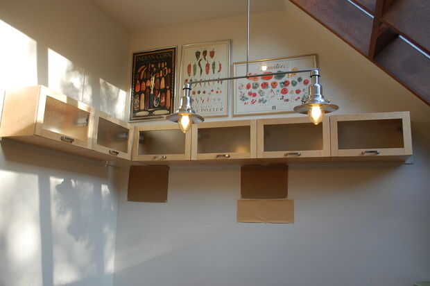 Desde que decidimos acerca de los armarios en las dos paredes, unos pequeños ajustes necesitan para realizarse. Las puertas añadir una pulgada de profundidad a los armarios, nos impide totalmente junto a los armarios de esquina. Después de montar los armarios, listo instalar, ajustar las puertas y estantes.