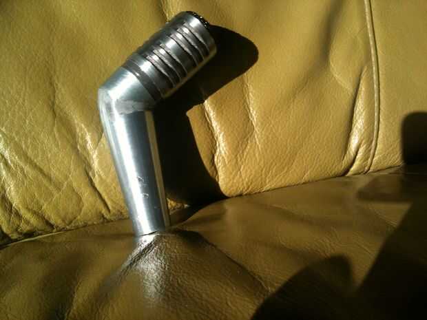 Hecho... un micrófono de 45 grados por 50 centavos de JBWeld y un chorrito de pintura brillante.