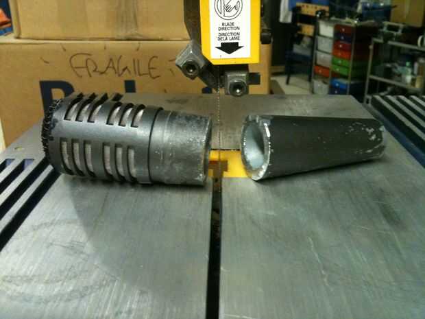 Vio el cuerpo de mic en la mitad con una sierra de banda o sierra para metales.