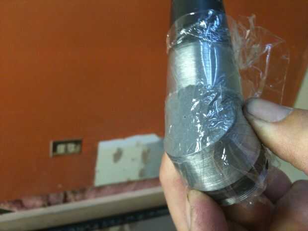 Llene encima la lana de acero con una capa gruesa de JBWeld. Para mantener la JBWeld hasta que firmas hasta envolver el codo con el abrigo del sandwich.