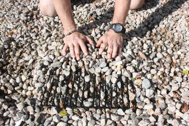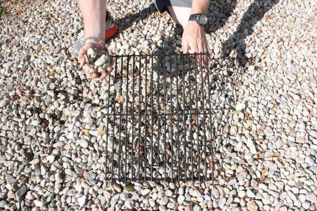 Retire las rejillas de la parrilla y en las piedras. Mejor es un área donde las piedras son algunas pulgadas de profundidad. Una capa de piedras sobre una pulgada profunda encima de la rejilla de la pila, y luego frotar las piedras alrededor. Las piedras raspar la suciedad de las rejillas como magia. Voltear y repetir. Buscar me un cepillo parrilla obtiene ambos lados de las rejas... Qué pasa! Golpear las rejas con la manguera o agua y jabón, y luego vuelva.