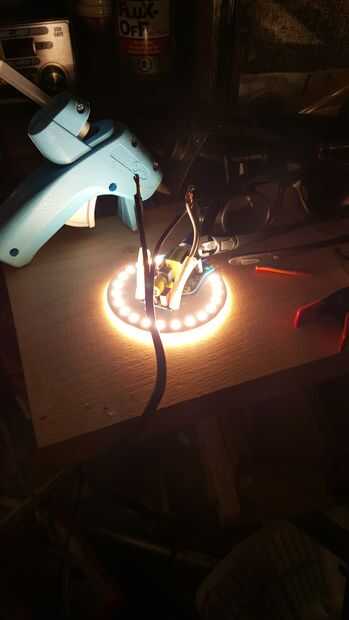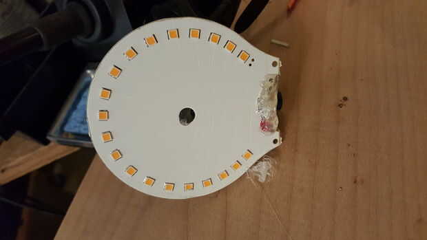 2) Utilice una pistola de pegamento caliente para fijar la placa de circuito en el disco.