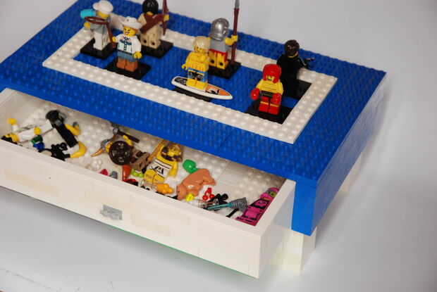 luego cubres la caja y su caja minifigura está terminado, ahora puedes decorar poniendo minifigures en él o construir un edificio en la parte superior.