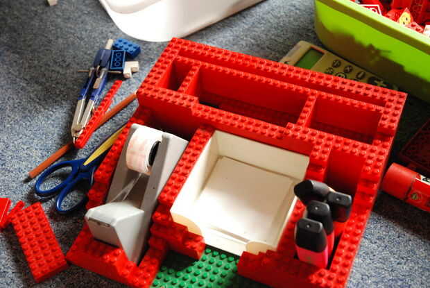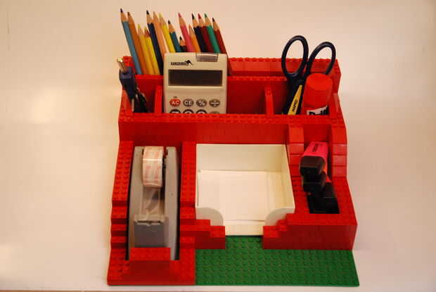 En primer lugar que comience con un 'plano', decida qué objetos que desea almacenar en el mismo, elegí una calculadora, un sostenedor de la cinta, un caso de post it y otras cosas como lápices y marcadores.