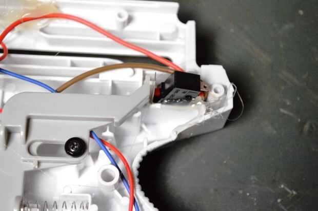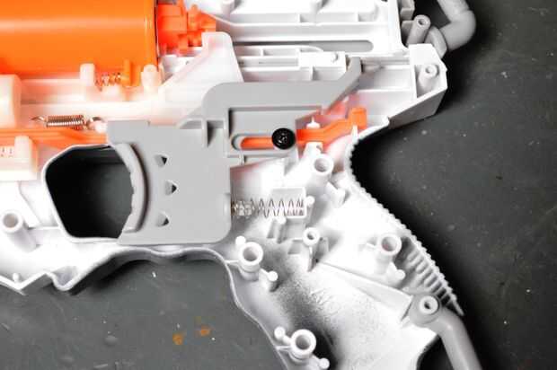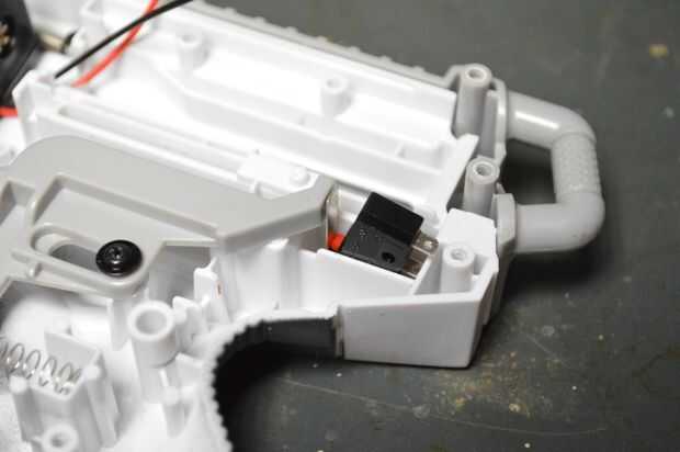 El arma de nerf que usé bastante tenía un lugar para poder añadir el interruptor de nivel y no tengo que hacer mucho moding. Lo importante al agregar el interruptor es para asegurarse de que el gatillo se mueve libremente y activa el interruptor cuando se tiró de nuevo. Donde Localice el interruptor de palanca dependerá de lo que te arma está utilizando