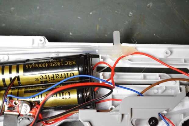 2. usted necesita cablear cada batería en una de las tomas de enchufe. Tuve que soldar un par de alambres directamente al soporte de la batería por lo que pude cargar cada uno por separado.