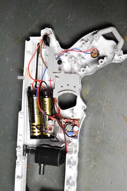 3. caliente pegar el portapilas en el interior de la pistola