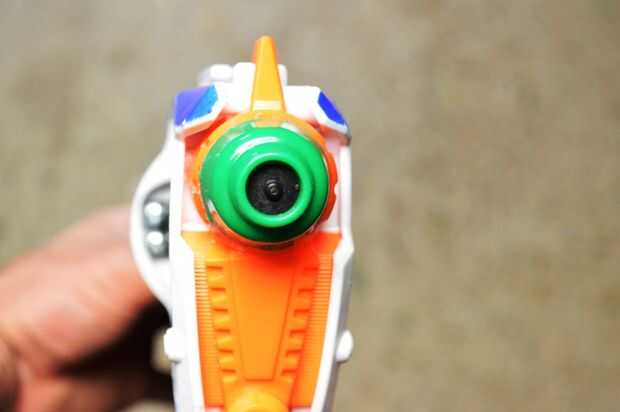 2. en primer lugar pegado el rociador a la carcasa de la pistola de agua