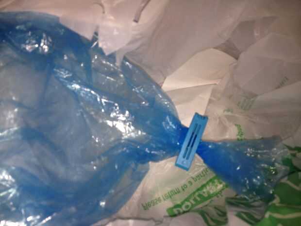 Sustituir el clip y poner fin de bolsa de basura dentro de bolsa de mandado. (Foto 3)