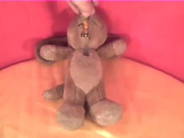 Tomar el cuchillo y hacer un agujero cuadrado de 2cm donde crees que sería menos visible en el juguete, en mi caso que el color no era justo por lo que opté por el pecho!