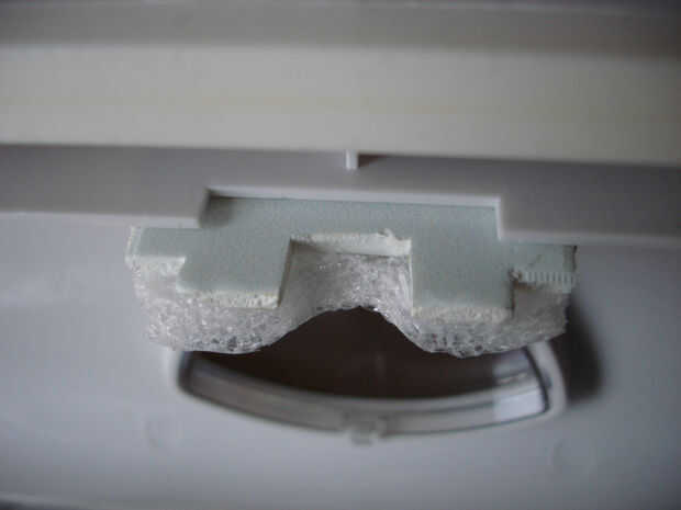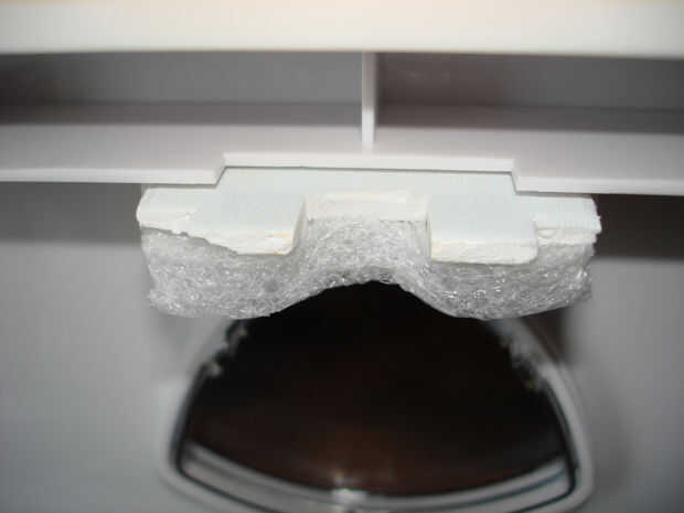Corte un trozo pequeño de espuma utilizado en el empaquetado y me forma que envuelven el orificio de succión.
