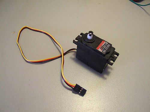 motores servos están diseñados para girar un máximo de +-130 grados. Pero pueden modificarse fácilmente para hacer giros de 360 grados. El hack está muy bien documentado para los varios modelos de motor servo. Aquí utilizo un servo Hitec HS-325HB com