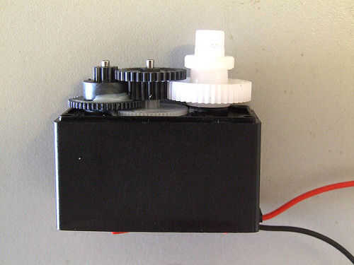 motores servos están diseñados para girar un máximo de +-130 grados. Pero pueden modificarse fácilmente para hacer giros de 360 grados. El hack está muy bien documentado para los varios modelos de motor servo. Aquí utilizo un servo Hitec HS-325HB com