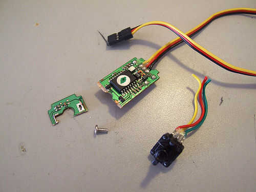 motores servos están diseñados para girar un máximo de +-130 grados. Pero pueden modificarse fácilmente para hacer giros de 360 grados. El hack está muy bien documentado para los varios modelos de motor servo. Aquí utilizo un servo Hitec HS-325HB com