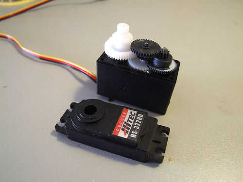 motores servos están diseñados para girar un máximo de +-130 grados. Pero pueden modificarse fácilmente para hacer giros de 360 grados. El hack está muy bien documentado para los varios modelos de motor servo. Aquí utilizo un servo Hitec HS-325HB com