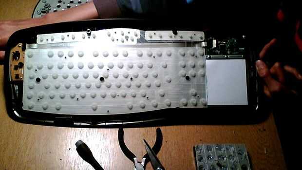 Ahora todo plano, queremos hacer llegar una hoja de papel A4 para cubrir la parte de la película de goma que acaba de cortar. Esto es sólo por estética, pero también le impide accidentalmente las teclas.