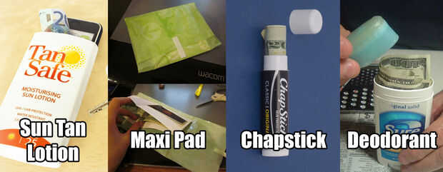 Ocultar en estos artículos de uso diario. Este hack es especialmente útil cuando se va a la playa, o cuando viaja y desea almacenar dinero de la emergencia.