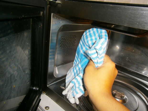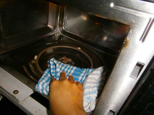 Sumerja la esquina de la toalla en el agua de limón y frote hasta el punto en caso de suciedad lejos.