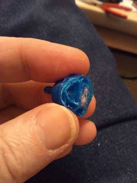 Cuando primero llegué mi impresora inocentemente pensé que sería imprimir la parte y lejos me gustaría ir, este no es el caso. Lo que se obtiene al final de una impresión puede ser muy áspera y un poco desordenada y tendrá que ser limpiada. Como se puede ver en las fotos necesita quitar las estructuras de apoyo usando alicates y un cuchillo. Porque el hing también posee un tornillo que es muy pequeño tuve que usar un taladro de los joyeros para limpiar el agujero para detener el tornillo de partir la parte cuando.