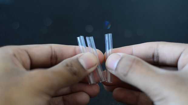 Agarra la manguera de aire y un par de tijeras y cortar tres trozos de tubo de aproximadamente 2 pulgadas (4-5cm) de longitud.