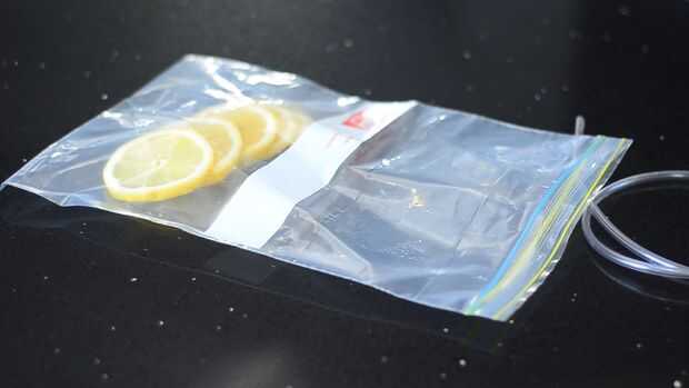 Colocar los productos que se desean sellar, en la bolsa. Usé limones, para esta demostración.