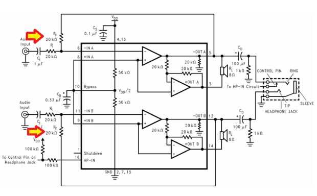 ¿La hoja de datos habla de un resistor de 20Khom para controlar la ganancia externa pero en la placa he encontrado sólo dos resistencias de 67Khom... se puede tener una ganancia > 1?