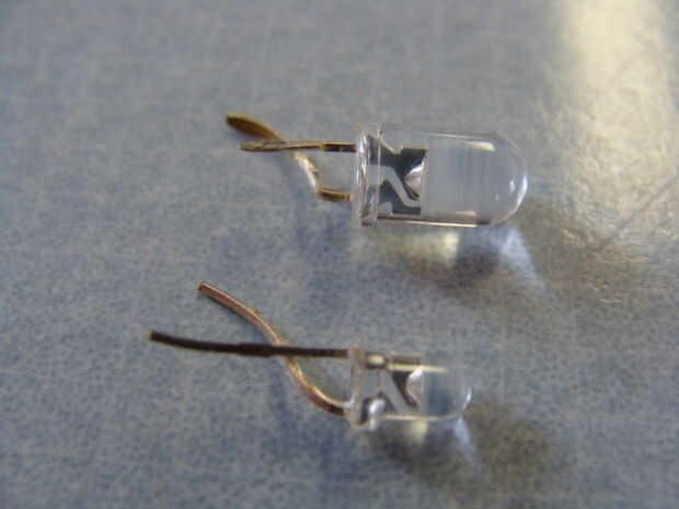 Retire el Ultra brillante led y forma la UV led al igual que la Ultra brillante, asegúrese de saber cual es positivo y cual es negativo!!! Instalar el LED ultravioleta del mismo modo que el LED de la UB fue.