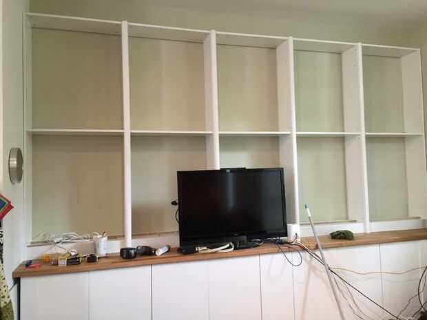 Vaya a su ferretería local para comprar moldeado que es del tamaño adecuado para cubrir las brechas entre sus estanterías. Clavo en su lugar con clavos de acabado. Utilizamos dos tipos de moldeo, un tipo simétrico para cubrir las brechas entre los estantes y un cuarto redondo tipo para cubrir las brechas entre los estantes de final y las paredes, que era un espacio más pequeño. El moldeado final es particularmente útil para ayudar a ocultar cualquier diferencia en el tamaño de la brecha entre los estantes y la pared de la parte superior a la parte inferior de la estantería.