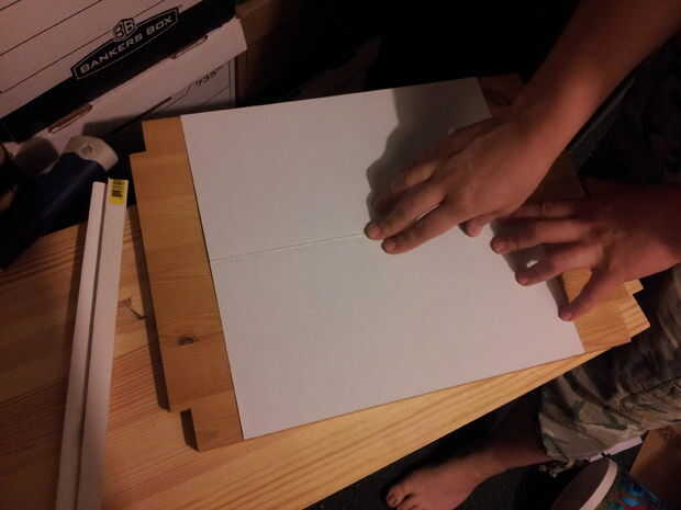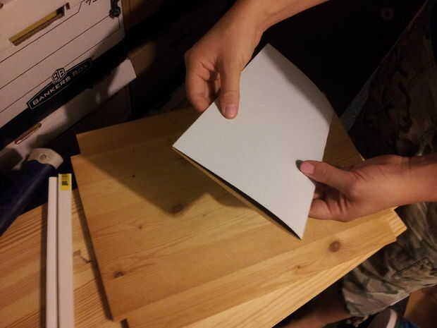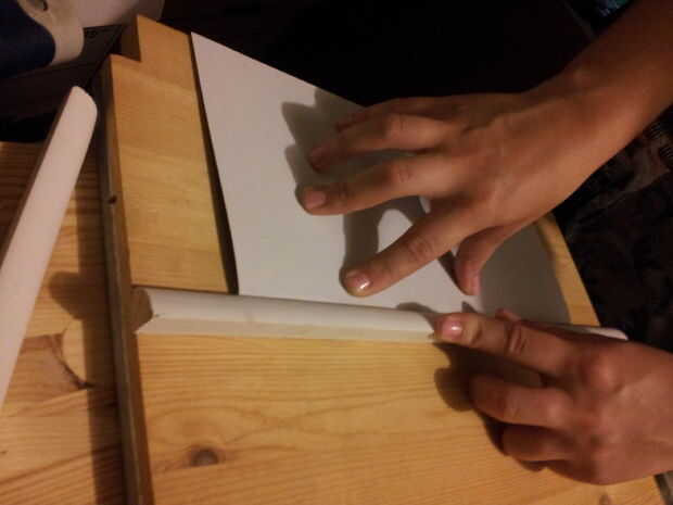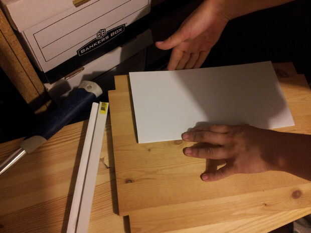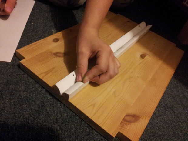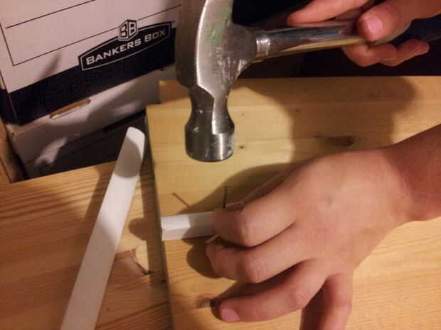 Esto a lo largo del borde exterior, línea una pieza precortada de cuarto redondo con la curva hacia la tarjeta de y 2 clavos cerca de los extremos para sujetar en posición de martillo.