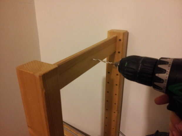 Ahora, tome uno de sus lados y perfore un orificio de aproximadamente en el centro de la barra superior.