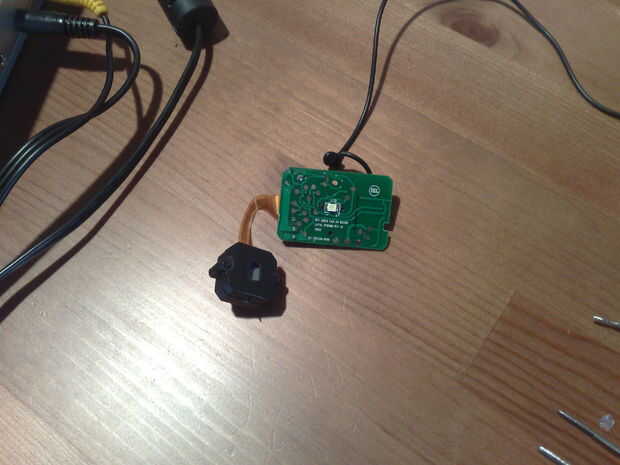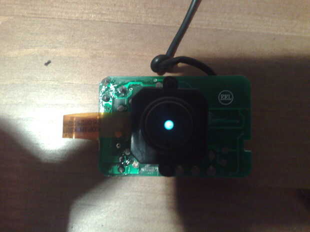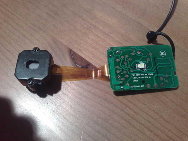 Ahora, conecte el cable de cinta del LCD a la placa de circuito. Conecte la placa de circuito a la batería de 9V, conectarse a una señal de vídeo (reproductor de DVD, cámara, utilice el coche espía &) y la carcasa de la cámara = tu HMD nuevo a la luz en el tablero de circuito. La razón, por qué lo estamos haciendo como este, es para adaptarse a la luz en el centro de la HMD / LCD display. Cuando encuentre la posición correcta, haga una marca, desenchufe 9V y señal de video y y pegar con la pistola encoladora.