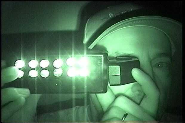 fin de semana pasado decidí hacer un alcance de visión nocturna infrarroja y aquí está. La razón de por qué funciona es que la cámara infrarroja puede ver las luces infrarrojas, pero no puede el ojo humano. Os adjunto la cámara infrarroja al visor de